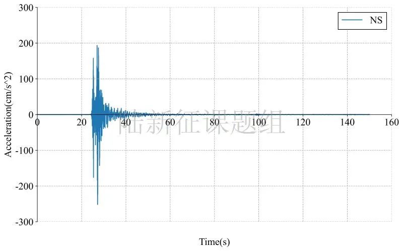 CICCC典型记录台站位置北纬35.525度,西经117.365度(图1,其中红色标记为震中位置),记录到水平向地震动峰值加速度为291.51cm/s/s,竖直向地震动峰值加速度为112.96cm/s/s。该地震动及反应谱如图2、图3所示。